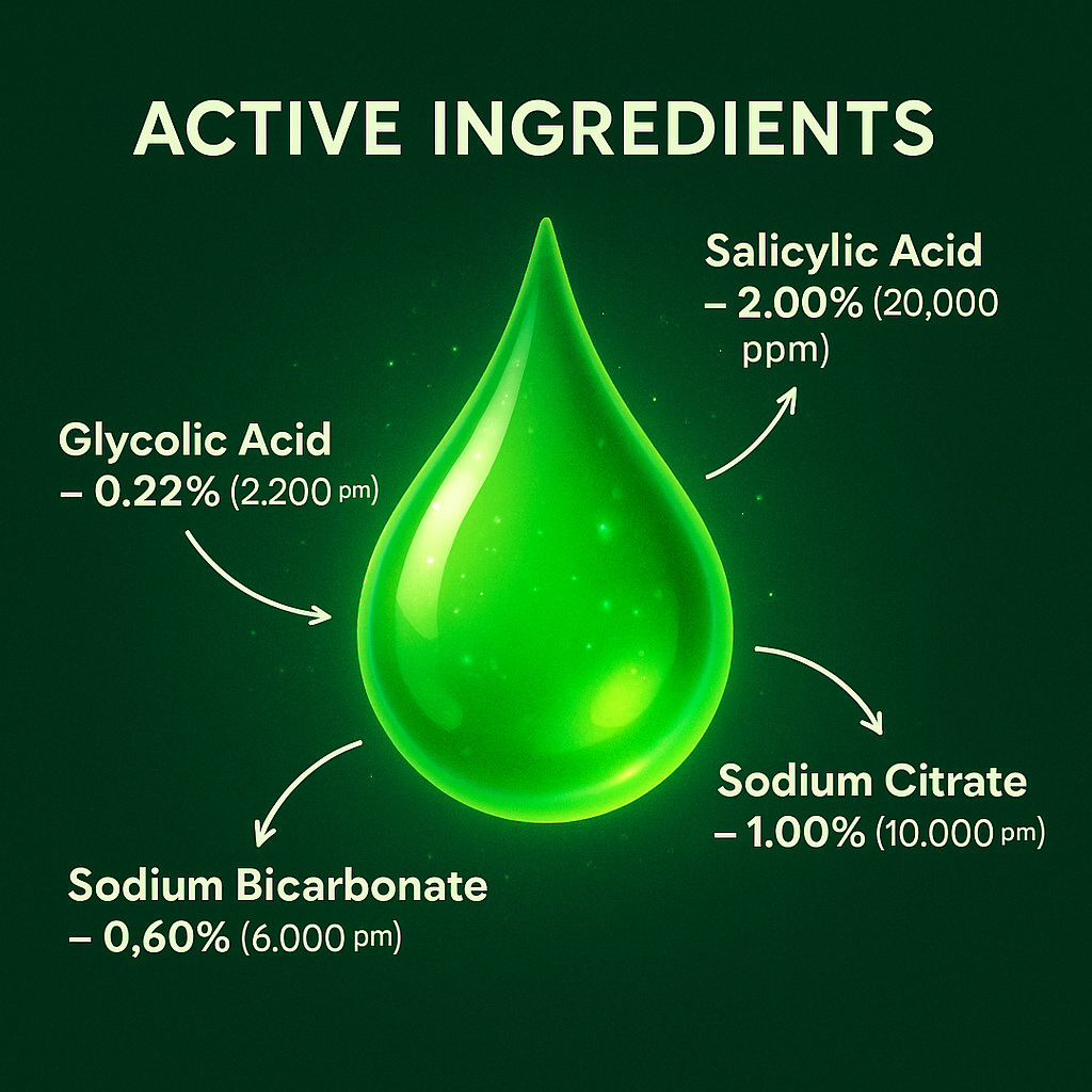 - 0.6% Sodium Bicarbonate β soothes and reduces inflammation